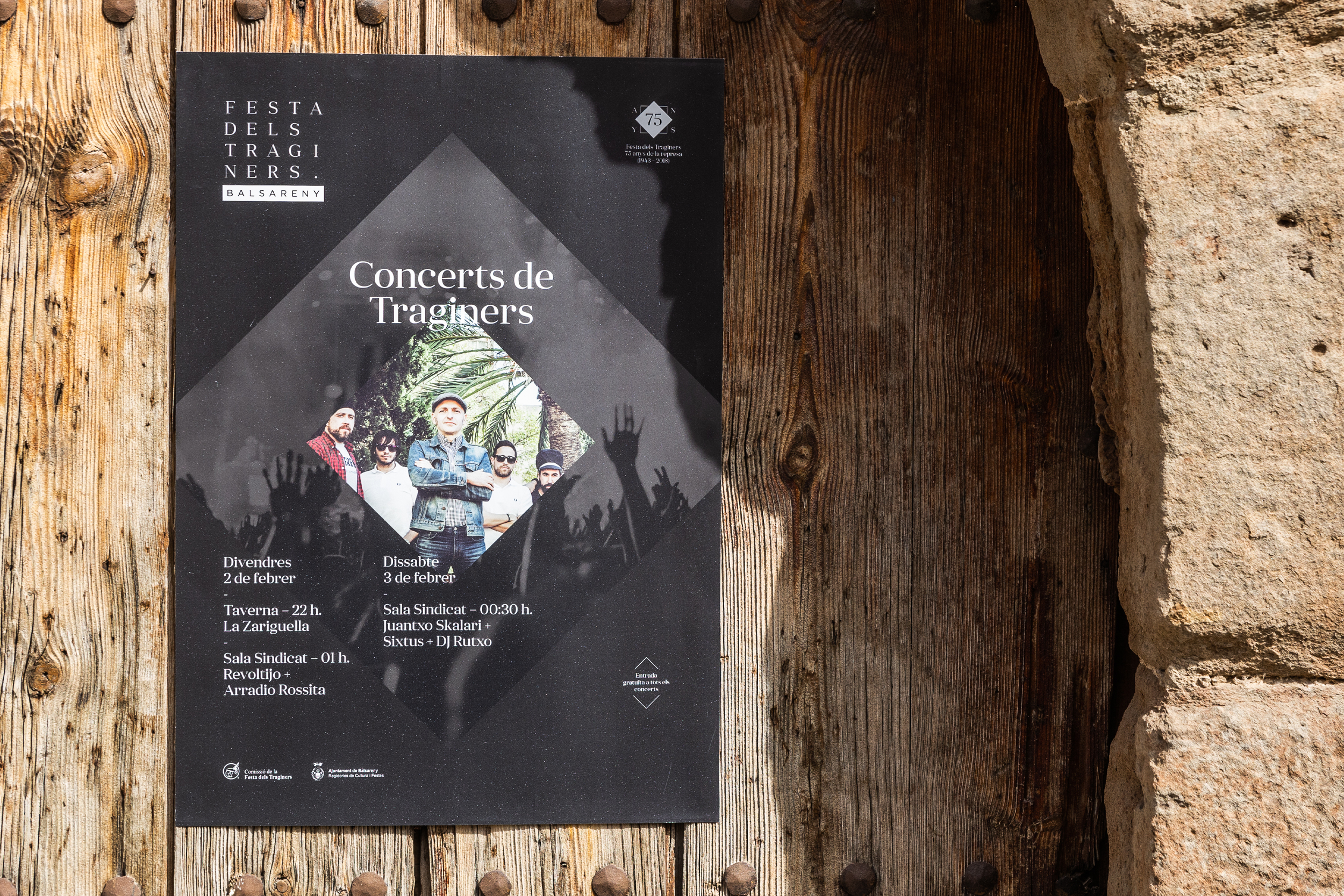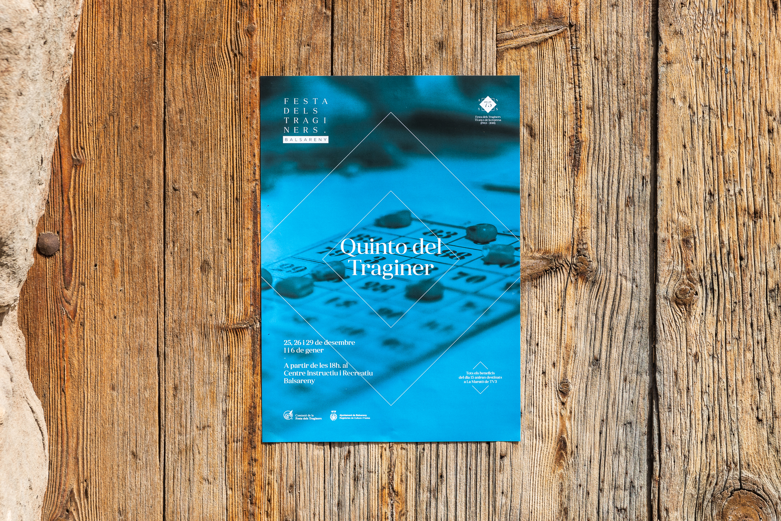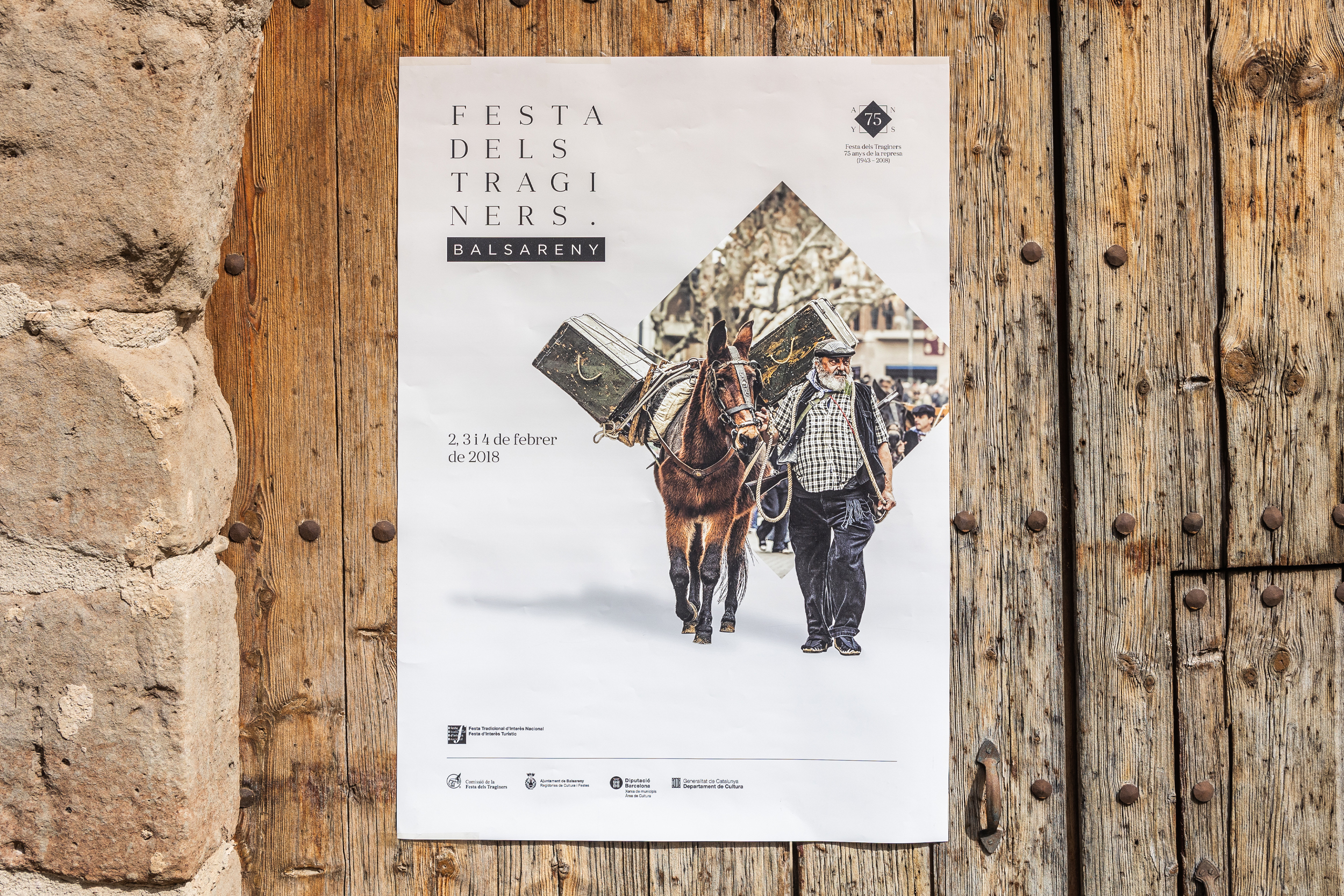 En el pueblo de Balsareny se celebra cada año la Festa dels Traginers. Un reconocimiento a la figura del «traginer» que hacía posible el transporte de mercancías y daba vida a los lugares más inaccesibles, uniendo todo tipo de pueblos y ciudades. Documentada desde el siglo XIX, restaurada en 1943 y declarada Fiesta de Interés Turístico Nacional, esta fiesta requería un salto a nivel gráfico. En primer lugar, se definió una tipografía y código visual que, a través de la geometría, permitía una amplia colección de piezas de comunicación. A partir de aquí generamos una cabecera versátil que actuara en todos los soportes y una serie de iconos para los diferentes espacios o actos de la fiesta. Además, coincidiendo con el 75 aniversario de la reanudación, se creó un logo conmemorativo que también acompañara a la comunicación.